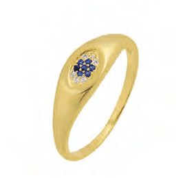 Позлатен сребърен масивен пръстен „Окото на Назар“ от тъмносини и бели циркони