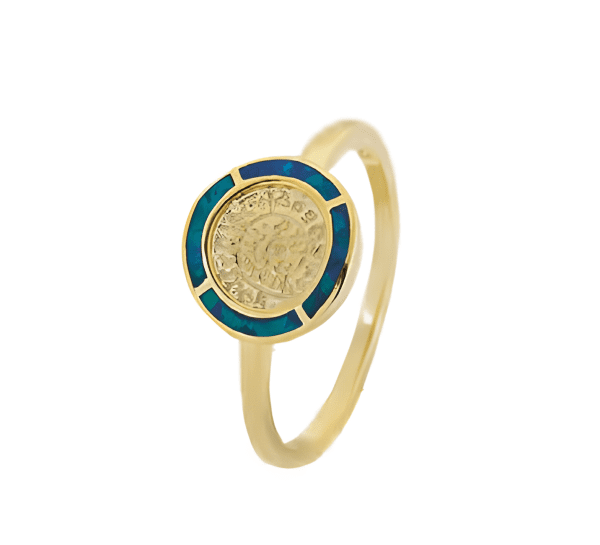Позлатен сребърен пръстен „Диск Фестос“ с опал, малък