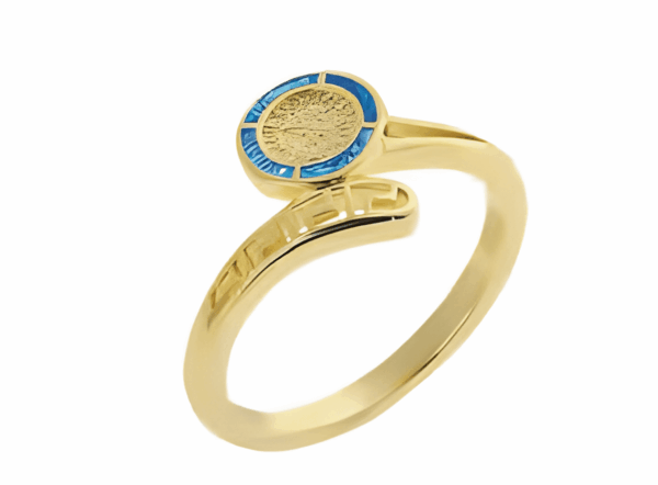 Обогатете своя стил с елегантността на позлатения сребърен пръстен „Диск Фестос“ с форма на световноизчестния артефакт с и опал от Happy Market. Уникалният дизайн съчетава позлата с изисканата форма на Фестоския диск и загадъчия блясък на опала. Прецизно изработен с внимание към детайлите, този пръстен не просто е бижу, а символ на розкош и изтънченост. Допълнете своята визия с този пръстен от колекцията на Happy Market и носете с удоволствие изискаността на вековните символи.