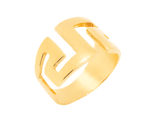 Пръстенът е изработен от висококачествено сребро, облечено във великолепно златно покритие. Неговият уникален меандърски дизайн придава ефир на богатство и стил. Подчертайте своето визуално присъствие с този бляскав и изискан пръстен, който носи класическа символика.