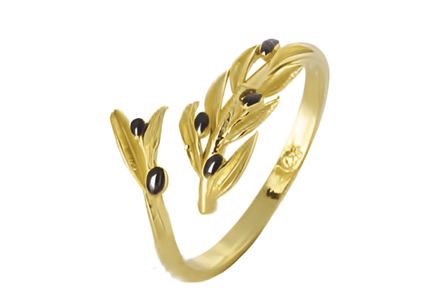 Маслиновата клонка се превръща в елегантен детайл, който обгръща пръстена с изтънченост и изисканост. Позлатените елементи добавят на бижуто допълнителна топлина и блясък. Изработен с високо внимание към детайлите, този пръстен предоставя не само стил, но и значимост.