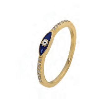 Изработен е от висококачествено сребро с елегантна позлата и е символ на предпазване от уроки и негативна енергия. Тъмносиният цвят е елегантен и мистериозен, а цирконите добавят нотка блясък. Пръстенът е идеален за всякакъв повод, от официални събития до ежедневния стил.