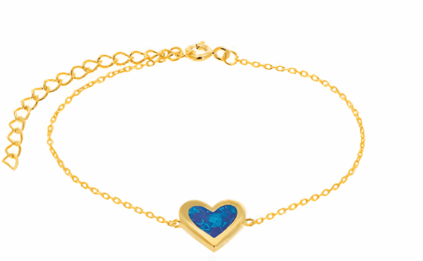 Позлатена гривна „Сърце“ с опал