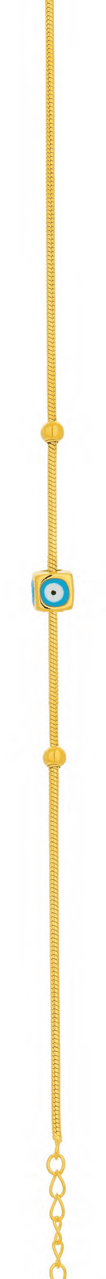 Сребърната гривна „Кубично Синьо око“ с позлата е модерен талисман, съчетаващ в себе си блясъка на благородните метали и силата на емблематичния символ.В центъра на гривната сияе висулка, изобразяваща „Синьо око“ в модерен кубичен дизайн. Изработена от сребро 925 проба и покрита с елегантна позлата, висулката привлича вниманието с блясъка си и с изящните си детайли. Вътре в кубчето блести свеетлосиньо око, сякаш улавящо чистотата на небето и силата на вярата.