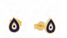 Тези позлатени сребърни обеци предлагат изтънченост и символична защита, съчетани в един елегантен дизайн. Формата на капка и тъмносиният амулет „Синьо око“ ги правят уникално и стилно допълнение към всяка визия.