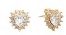 Позлатени сребърни обеци на винт „Сърце“ с цирконии