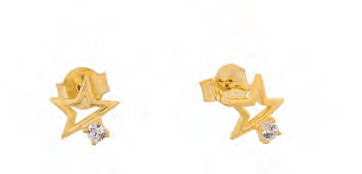 Обеците са с елегантен дизайн, съчетаващ звездички, украсени с нежни бляскави циркони.Звездата е символ на блясък, надежда, мечти, стремеж към високи цели, постижения и женственост. Цирконият е символ на чистота, блясък и красота. Изработени от сребро проба 925, позлатени, което гарантира качество, блясък и устойчивост.
