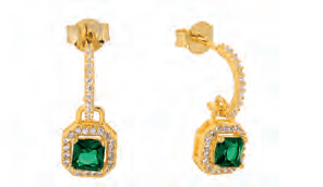Позлатени сребърни висящи обеци „Квадрат“ със зелен цирконий