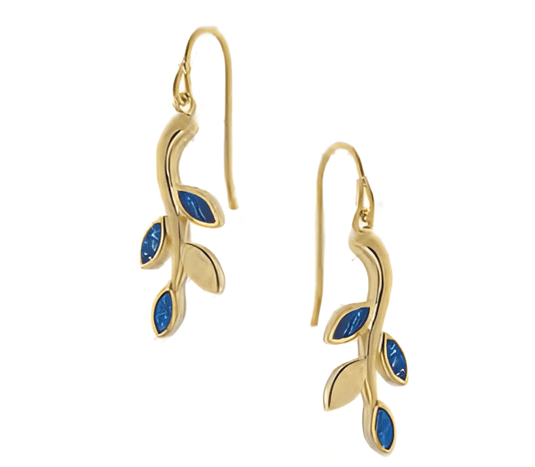 Позлатени сребърни висящи обеци с опал „Маслинова клонка“, тип кука