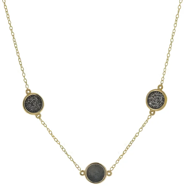 Позлатено колие с 3 диска Фестос с черен център