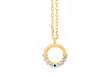 Позлатено сребърно колие с халка, цирконии и светлоосиньо око