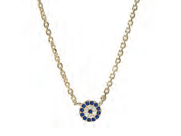 Елегантно и тайнствено, това колие ще допълни перфектно вашия външен вид с елегантност и загадъчен чар.Циркониевите камъни в син и бял цвят, използвани за декорацията, придават блясък и стил на бижуто, а самото синьо око е познато като защитник от зли сили. Колието е обогатено с родиево покритие и позлата от жълто злато, което не само подчертава блясъка му, но и гарантира устойчивост и дълготрайност