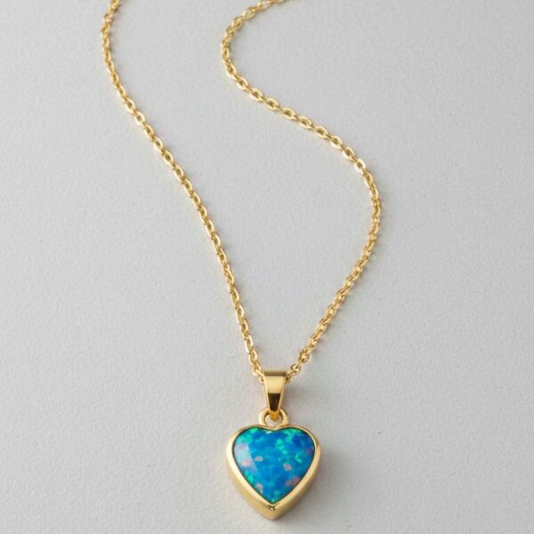 Нежно позлатено сребърно колие Сърце с опал, което излъчва романтика и изисканост. Идеален избор за подарък или стилен акцент към всяка визия.