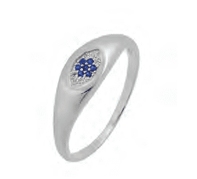 Сребърен масивен пръстен „Окото на Назар“ от тъмносини и бели циркони