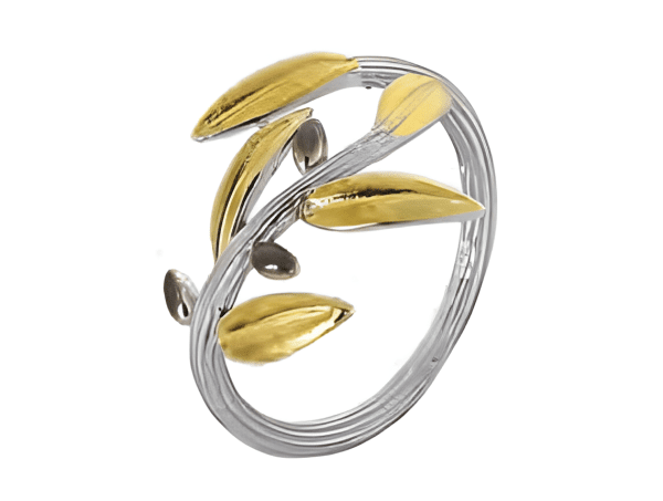Сребърен пръстен с позлатена маслинова клонка