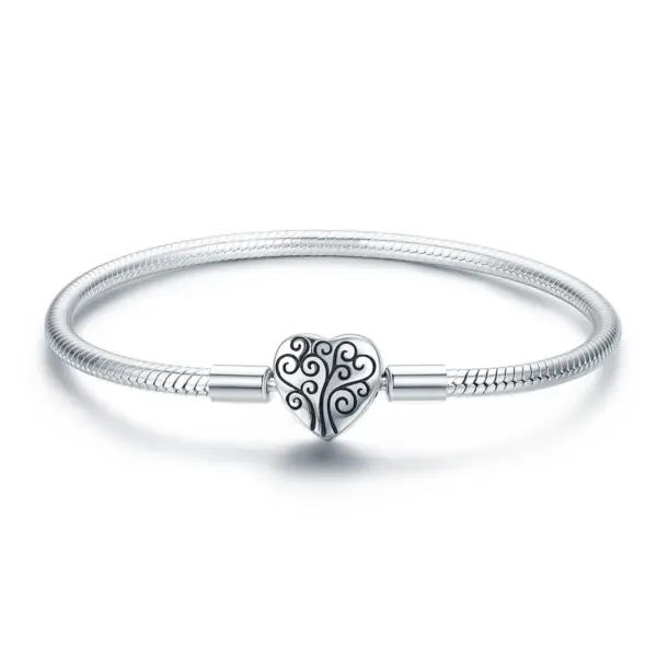 Сребърна гривна тип Пандора със сърце и дърво – символ на любов и растеж
