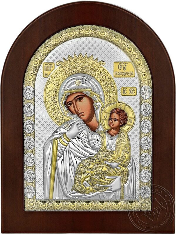 Сребърна икона Богородица на насладата и утешението, 10×14см