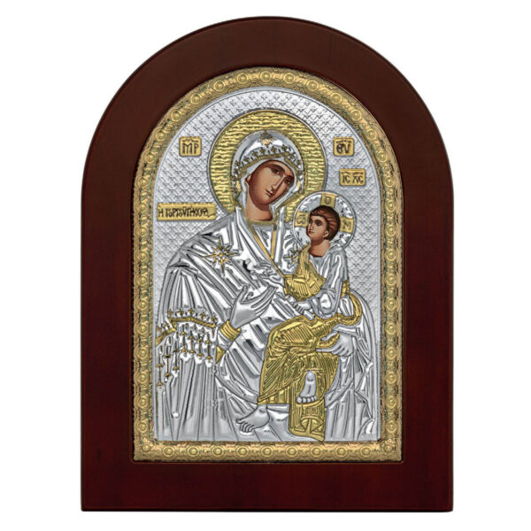 Иконата е ръчна изработка върху дърво.Тя е точно копие на оригинала, създаден през средните векове.Иконата е направена от многослойни лакови покрития, златно и сребърно фолио.Св. Богородица е покровителка на майките и децата, закриля при беди и житейски проблеми.Иконата е подходящ подарък за нов дом, имен ден, рожден ден, юбилей и др.