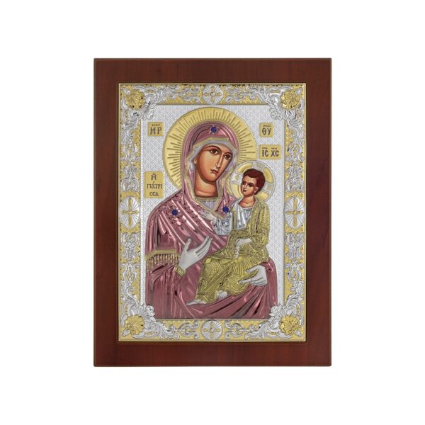 Сребърна икона с розово злато Св.Богородица Гиатрица(Изцелителка), 10×12.5см