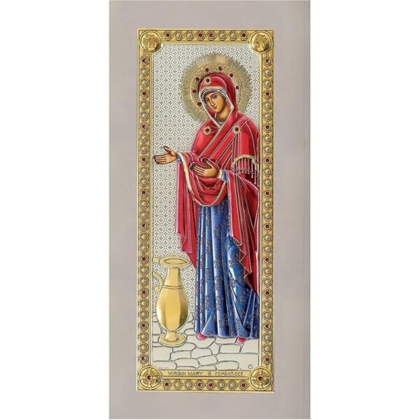 Сребърна икона цветна и с бяла рамка Богородица „Геронтиса“, MA/E1202/WH-EXB 6X12см