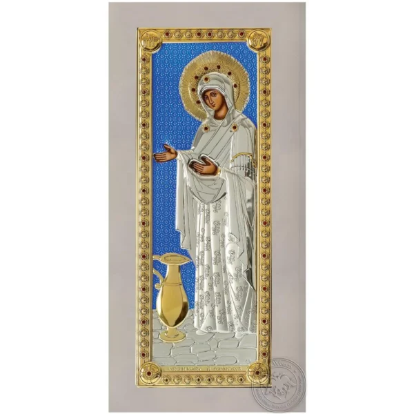 Сребърна икона в син цвят и бяла рамка Богородица „Геронтиса“, MA/E1202/WH-VXB, 16,5X37см