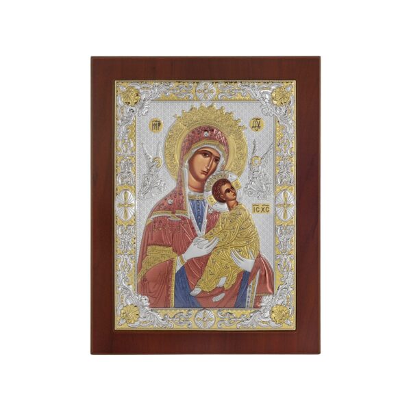 Сребърна цветна икона Богородица Амолинтос, 10×12.5см