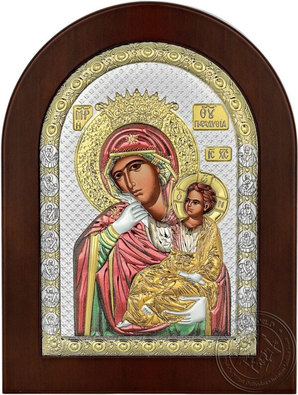 Сребърна цветна икона-Дева Мария на насладата и утехата, 15×21см