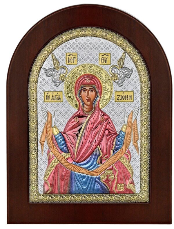 Сребърна цветна икона Поясът на Борогодица, 20×26см