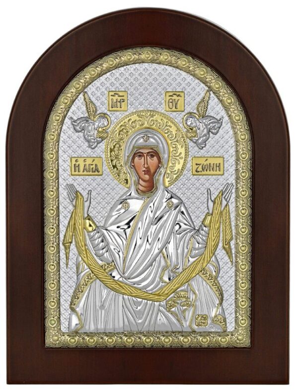 Сребърна цветна икона Поясът на Борогодица, 7.5×9.5см