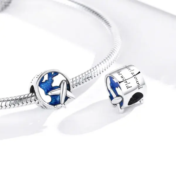 Сребърна висулка Синя Земя със самолет – за любителите на пътуванията