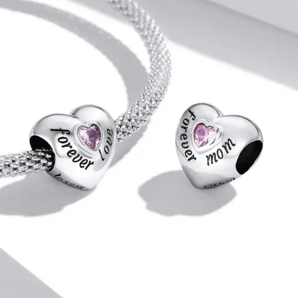 Сребърна висулка „Завинаги майка с розов камък“