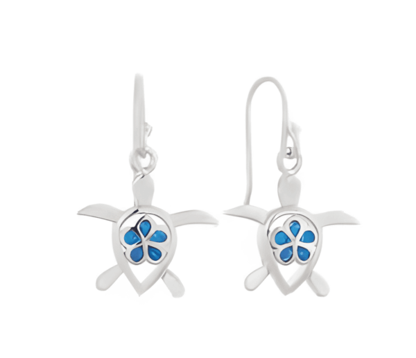 Сребърни обеци „Костенурка и цвете“ с опалови камъни и закопчаване с кука