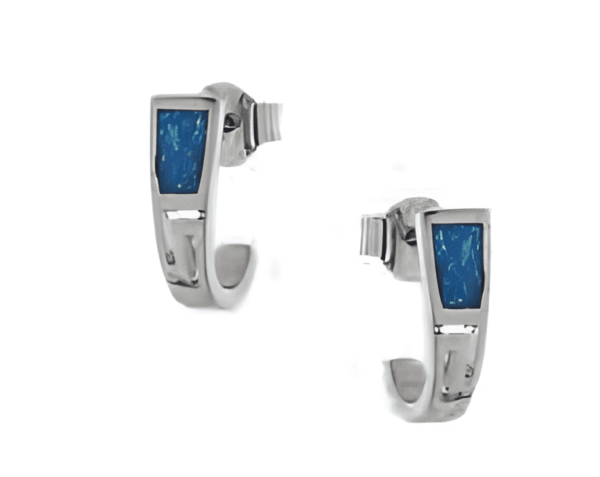 Сребърни обеци с опал и гравюра Меандър, тип винт