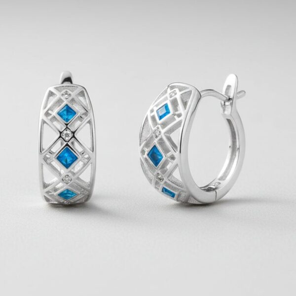 Елегантни сребърни обеци с опал и цирконии, завършени с удобно и сигурно английско закопчаване. Нежен блясък и комфорт за ежедневие и специални поводи.