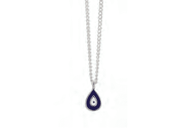Сребърно колие „Капка със синьо око“,тъмносиньо
