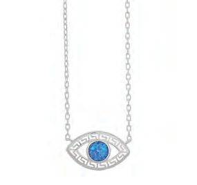 Сребърно колие „Окото на Назар“ с опал и меандър