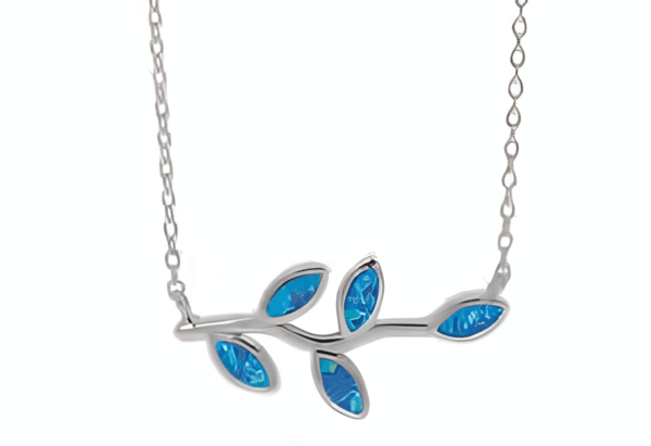 Сребърно колие с малка маслинова клонка с опалови камъни
