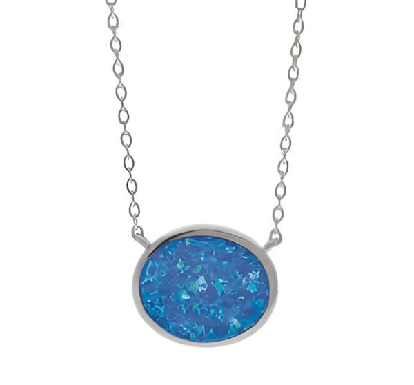 Сребърно колие с висулка кръг със син опал