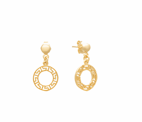 Висящи кръгли обеци Меандър от позлатено сребро