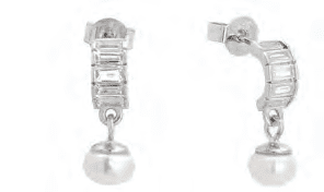 Висящи сребърни обеци на винт „Полухалки“ с цирконии и перла