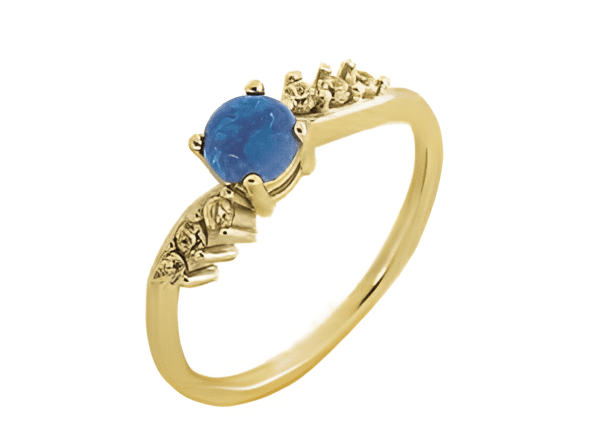 Опознайте уникалната красота на този женствен сребърен пръстен със златно покритие и син опал от ексклузивната колекция. Това бижу съчетава нежността на опала с елегантността на златото, предоставяйки ви блясък и стил.